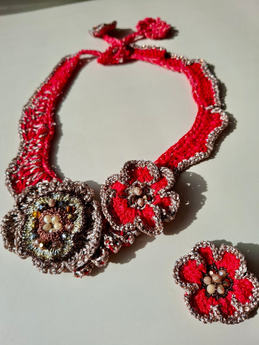 Coral Baroque Bloom – Handmade Statement Necklace with Missoni Silk