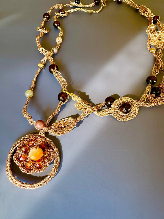 Golden Earth Crochet Necklace
