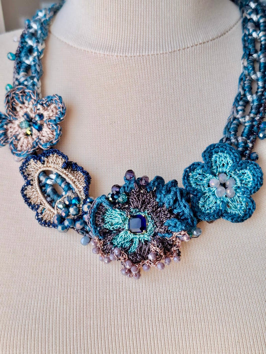 Azure Harmony – Handcrafted Crochet Necklace