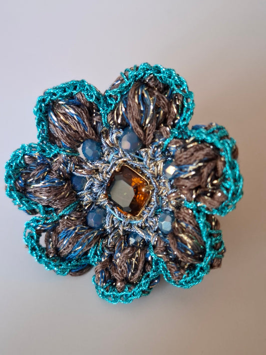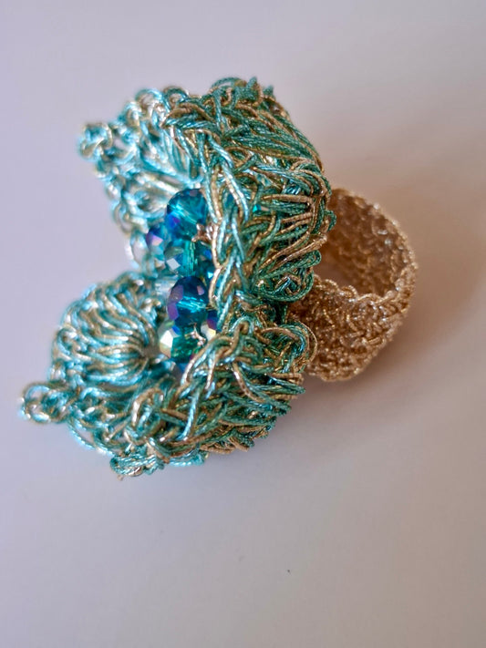 Handkrafted rings and earrings with silk and mohair yarns, jewelry wire, crystals and natural stones - each piece is unique, a touch of artistry and elegance. For everyday artful living.