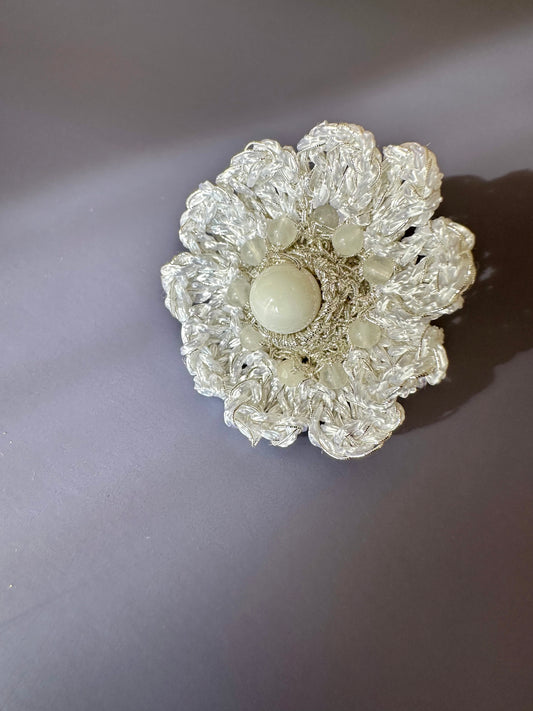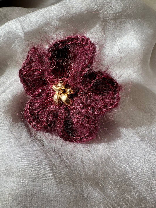 Silk Mohair Burgundy Artistic Ring with Crystals